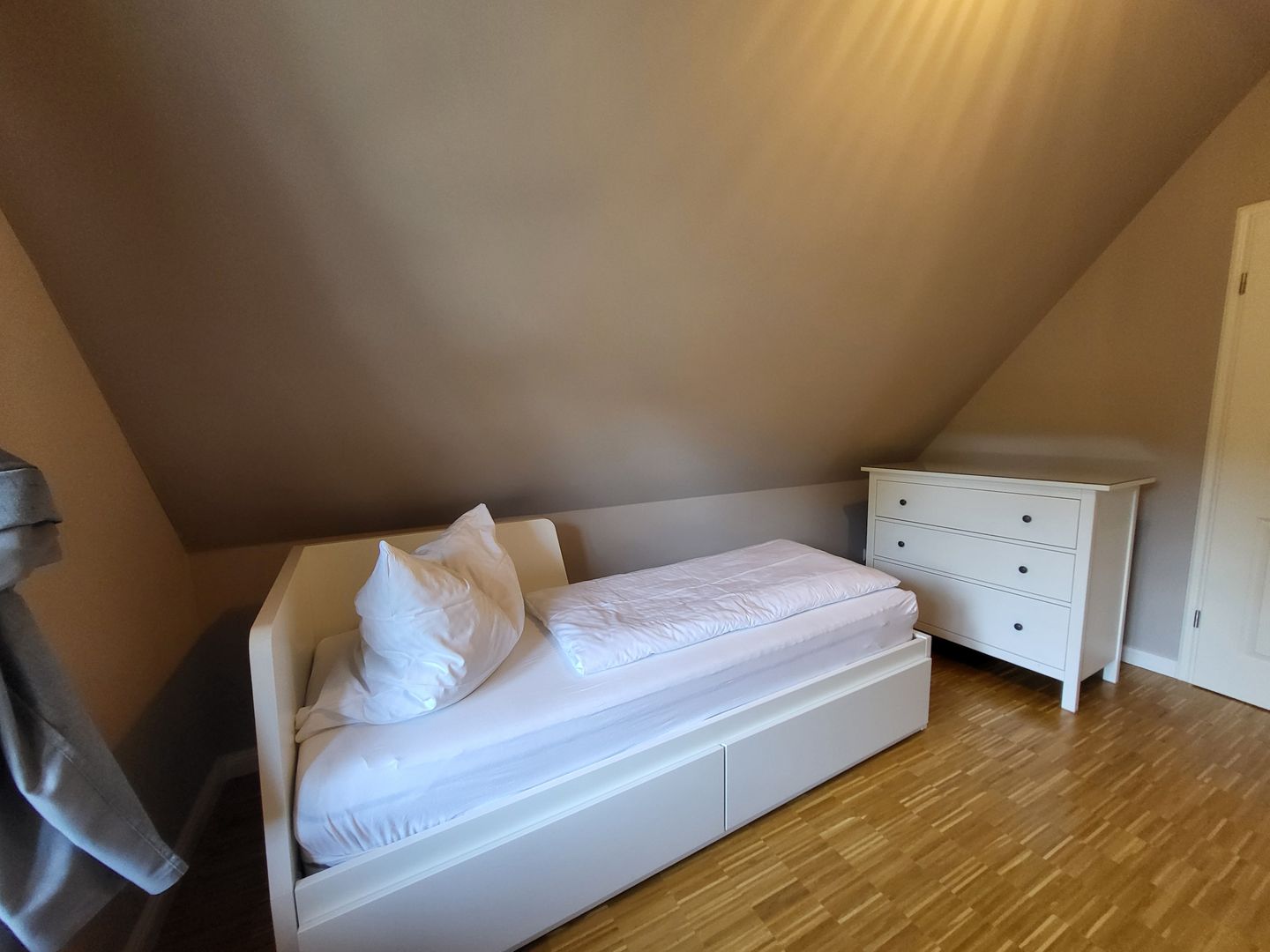 Die beiden Schlafzimmer im OG. sind mit hochwertigen Vinylböden ausgelegt und bieten ebenso wie das Wohnzimmer ausreichend Stauraum durch Kommoden. Die Schlafmöglichkeiten sind insgesamt für vier Personen ausgelegt; auf Zustellbetten wurde bewusst verzichtet, wodurch ein angenehmes Raumgefühl entsteht. In beiden Schlafzimmern profitieren Sie von einer angenehmen und allergikerfreundlichen Umgebung.