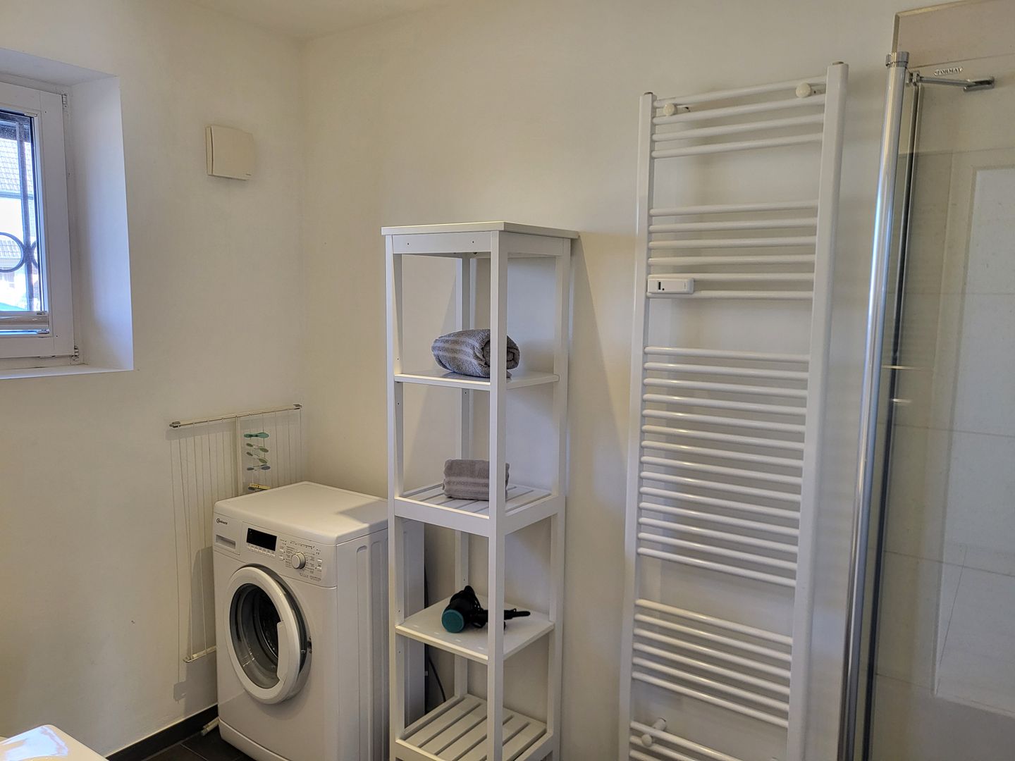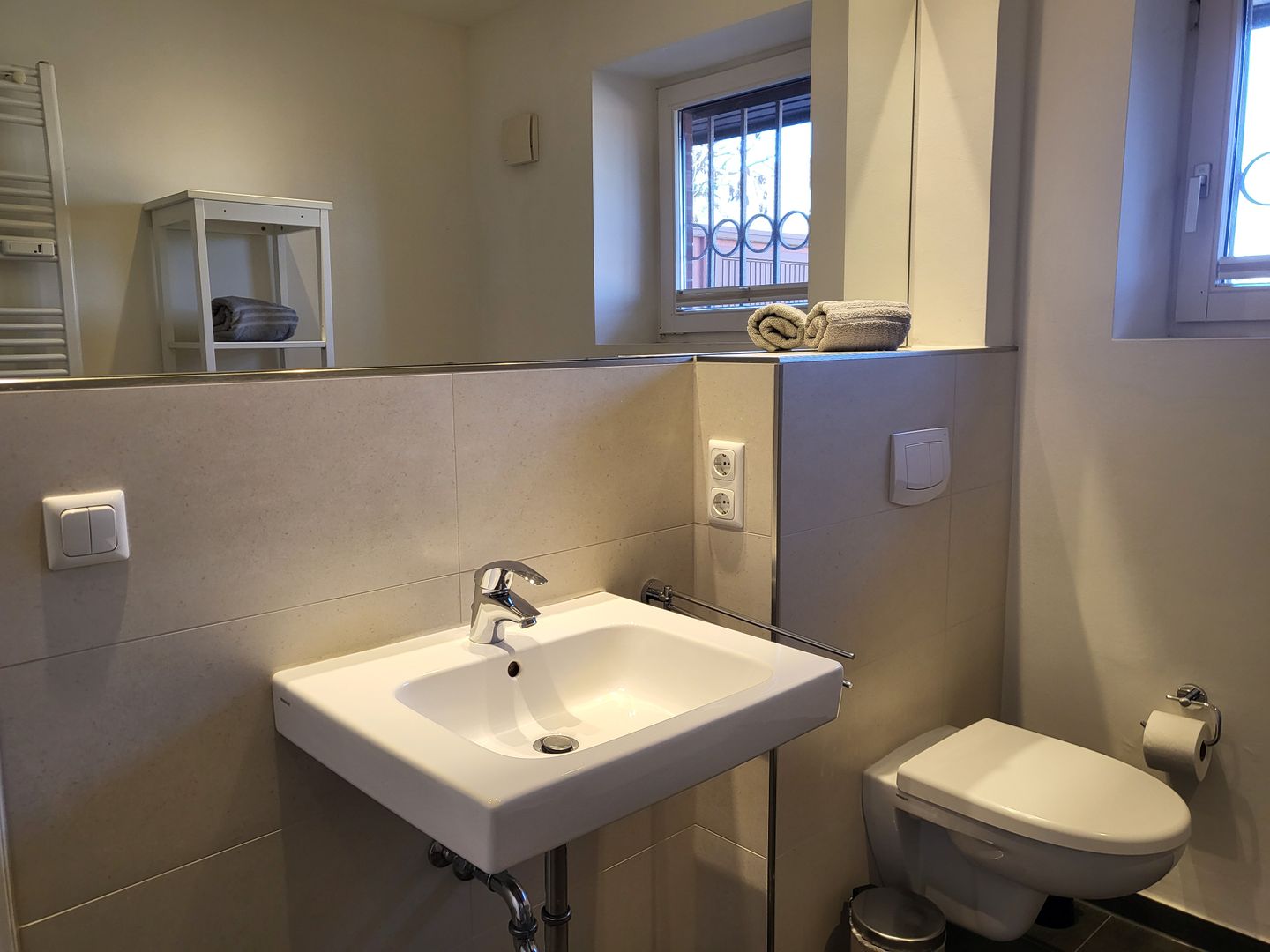 Zur Ferienwohnung gehört ein Duschbad mit bodengleicher Dusche und WC.